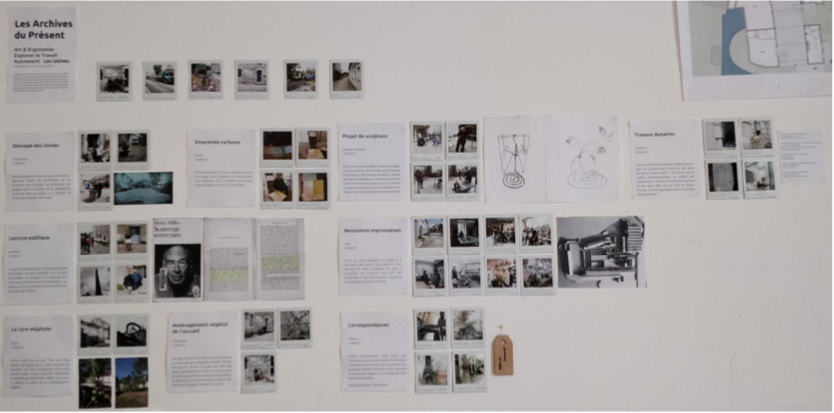 Du mardi 11 au 14 juin 2019, nous avons proposé aux personnes des Usines de réaliser des mises en situation individuelles en lien avec le collectif des Usines pour constituer Les Archives du Présent. L’objectif était de trouver une forme pour renforcer et ancrer le collectif présent et à venir au travers des diversités individuelles qu’il rassemble. Pour cela chacun était invité à créer à partir de son point de vue, de son histoire et/ou de son activité, une mise en situation qui donne à voir les Usines singulièrement. Une manière de parler de soi dans le lieu et de le partager. Cette collection de regards a permis de créer une première empreinte de l’identité actuelle des Usines. 13 personnes ont participé et 9 mises en situations furent réalisées :