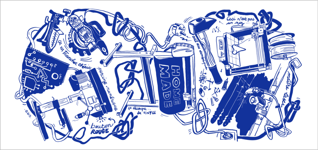 homemade ne s’arrête pas là : avec certain.es acteur.trices, entre autres de l’ESS présent.es sur le territoire, le futur d’une production plus locale a été projeté et inventé, accompagné notamment avec les chantiers d’insertion, les entreprises adaptées, les FabLabs, les acteurs de la santé, du médico-social et du handicap.